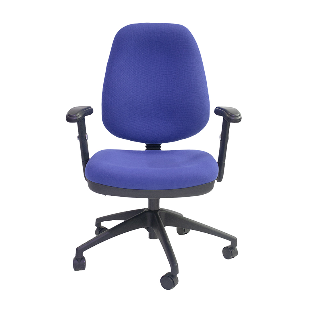 Silla Semi Ejecutiva en azul Respaldo: Tela + Espuma + Cubierta de plástico Asiento: Tela + Espuma + Cubierta de plástico; Ancho 52 cm Reposabrazos: Reposabrazos ajustable 609# con acolchado de cuero Mecanismo multifuncional 215# Elevador ...